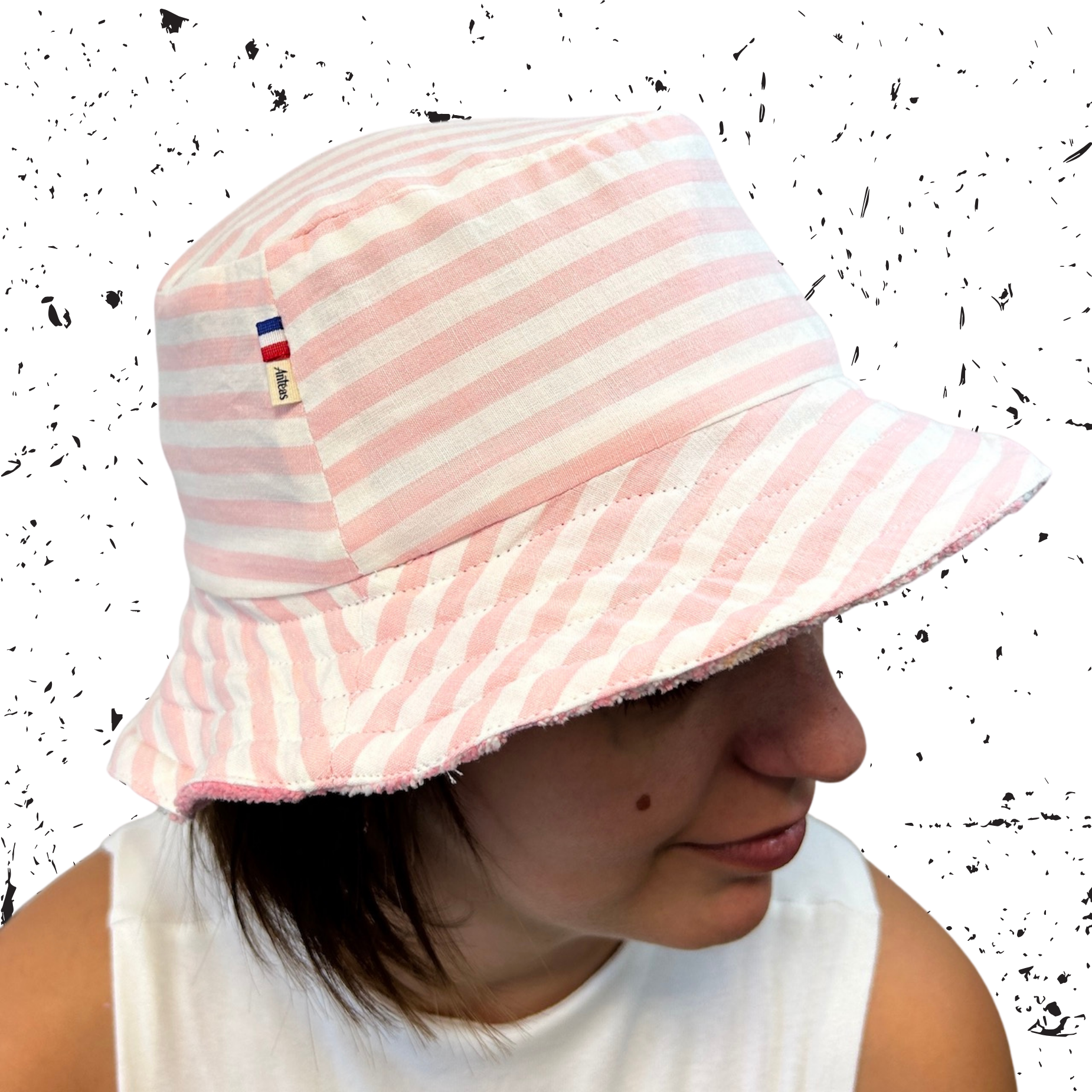 Le bob Topaze est né dans notre atelier d'Auvergne, où nous avons marié deux matières upcyclées : une éponge pour le confort, et un coton recyclé pour le style. Réversible, il vous offre deux looks en un seul accessoire : un côté décontracté et absorbant (éponge), et un côté élégant et léger (coton). Parfait pour les journées ensoleillées ou les activités en plein air !