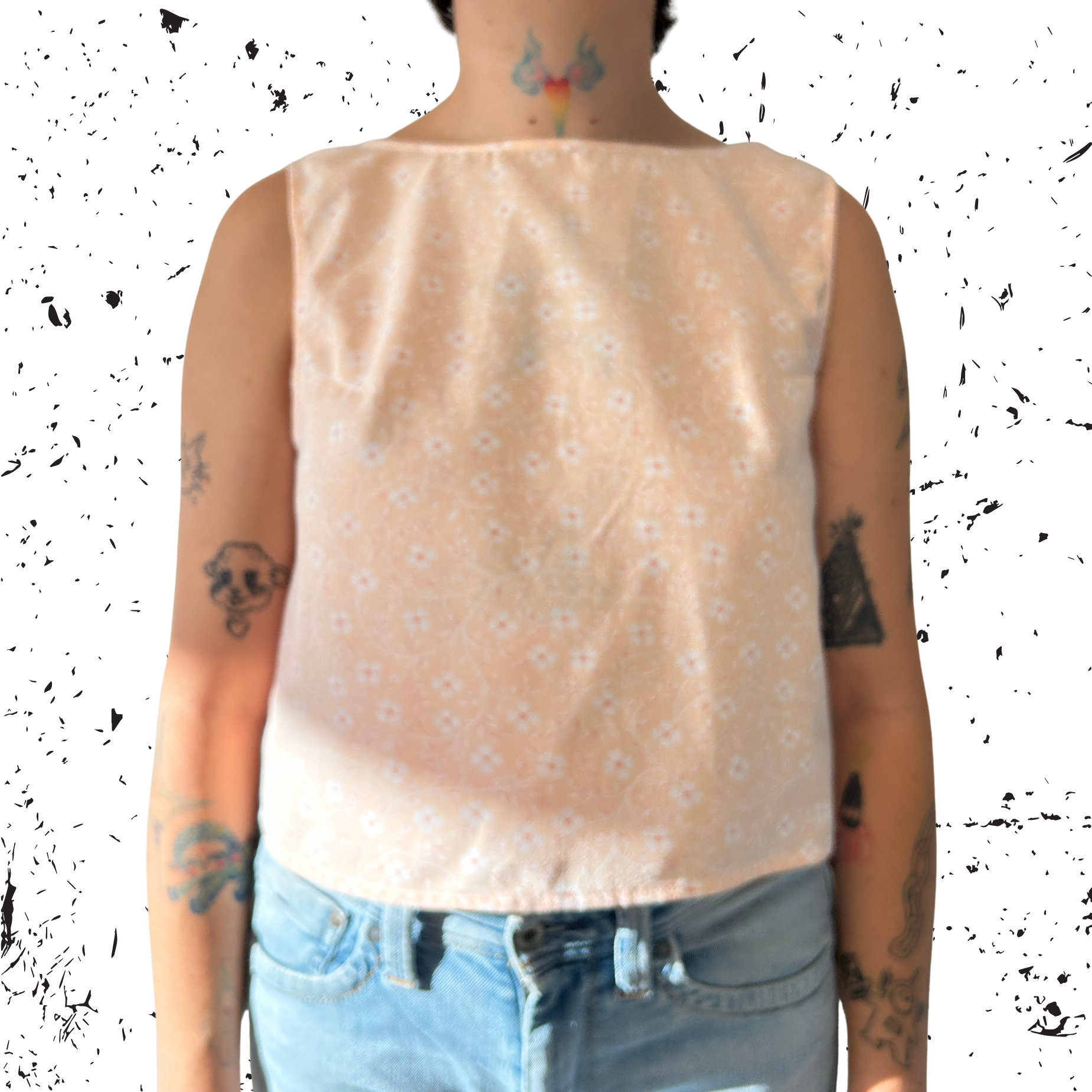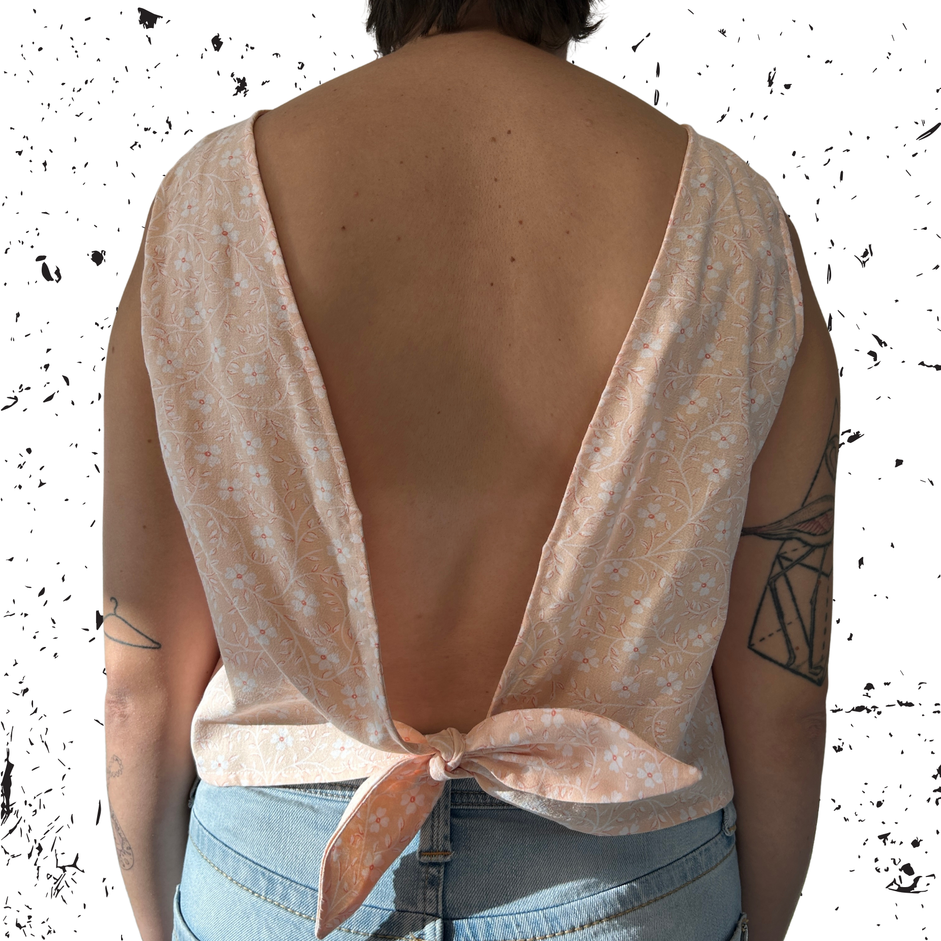 Un top dos nu audacieux en 100% coton upcyclé, se nouant élégamment dans le bas du dos pour un style féminin et raffiné. Parfait pour les journées d'été ou les soirées décontractées.